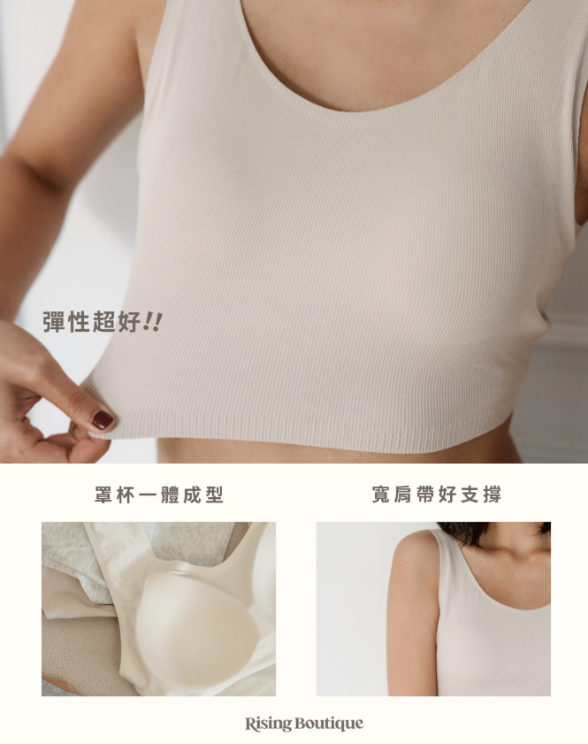 帶有內杯一體成型設計,並且內層霧滑布料阻隔內杯,