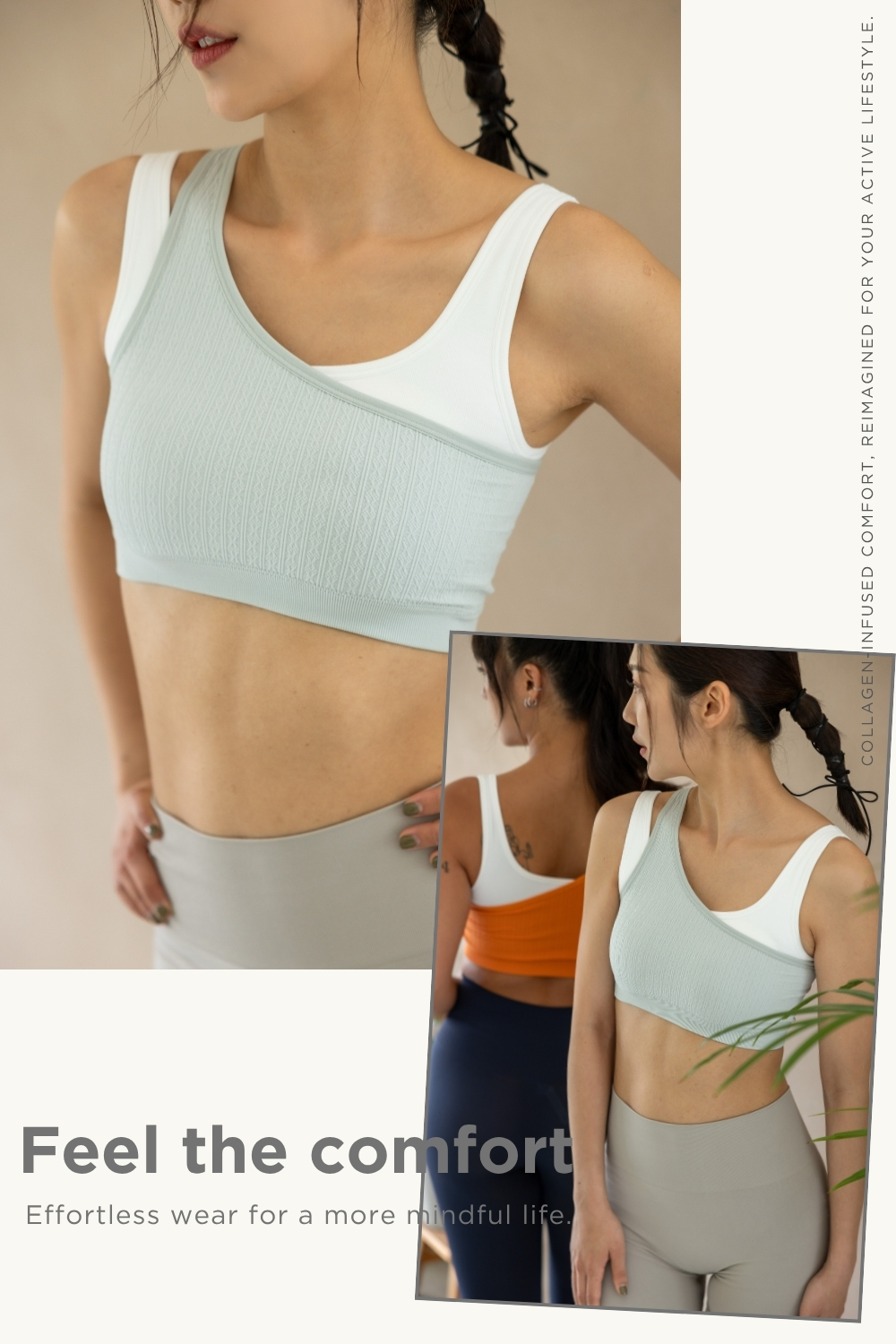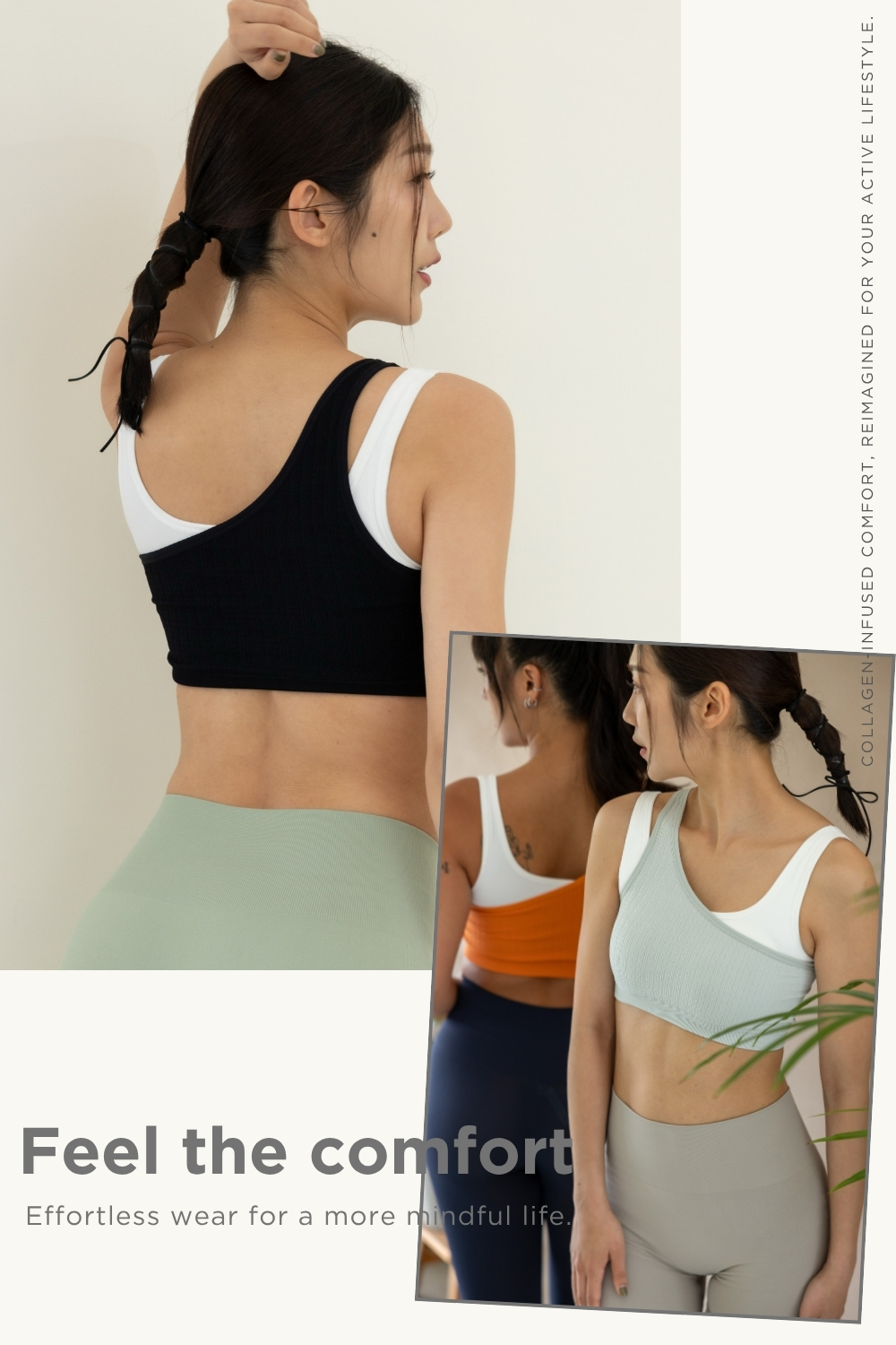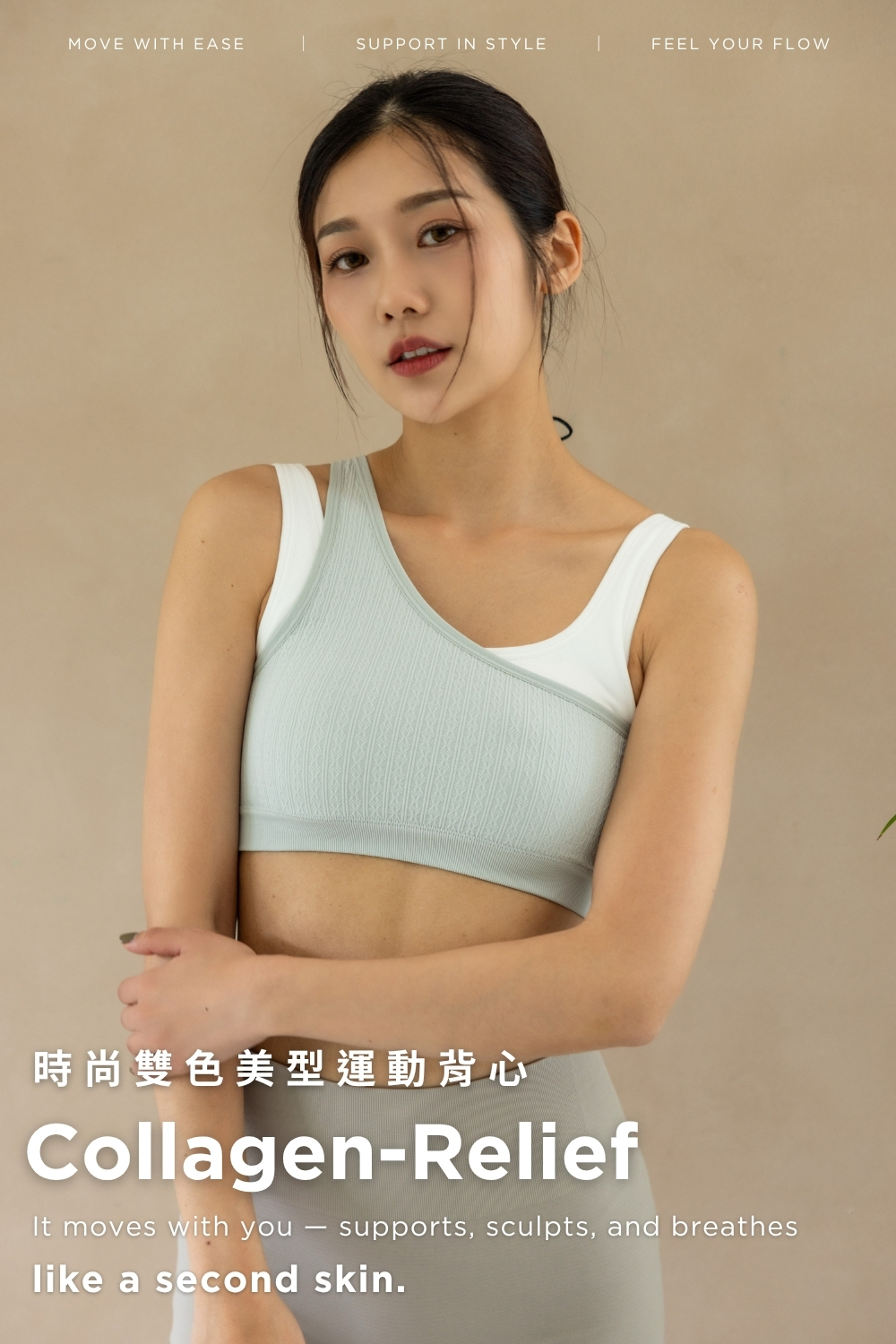 這款膠原背心,以獨家CR²膠原蛋白紡織科技打造,穿著即呵護,減少運動後乾紋細紋生成。