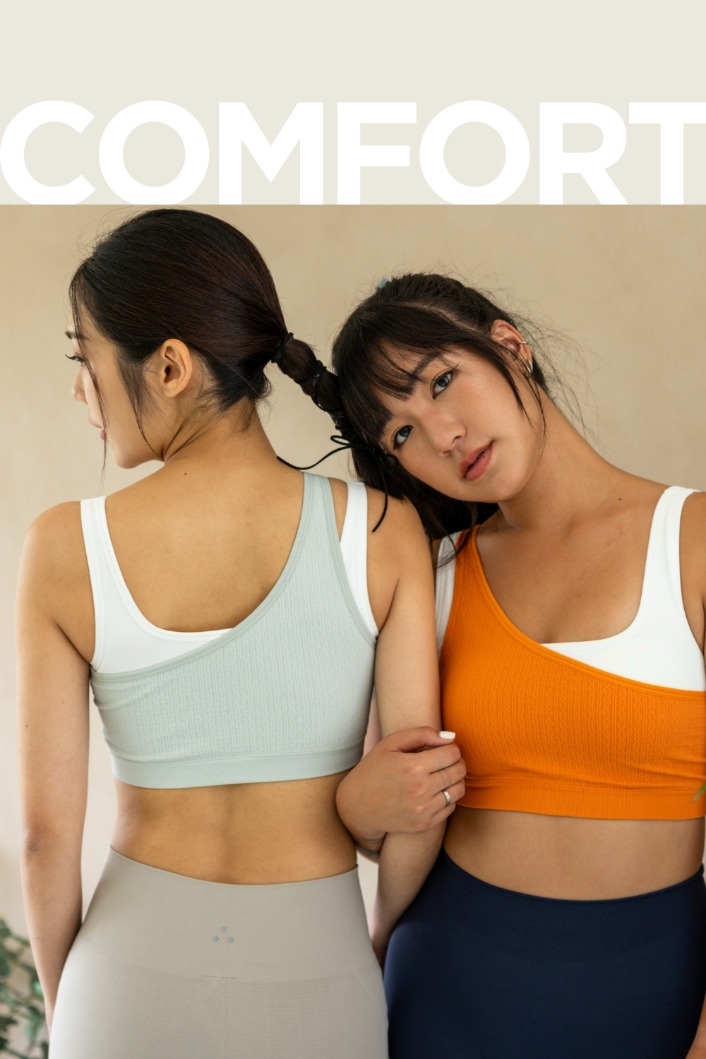 再加上創新不對稱肩帶設計與時髦撞色美背剪裁,一件就能讓你兼顧舒適、機能與造型。