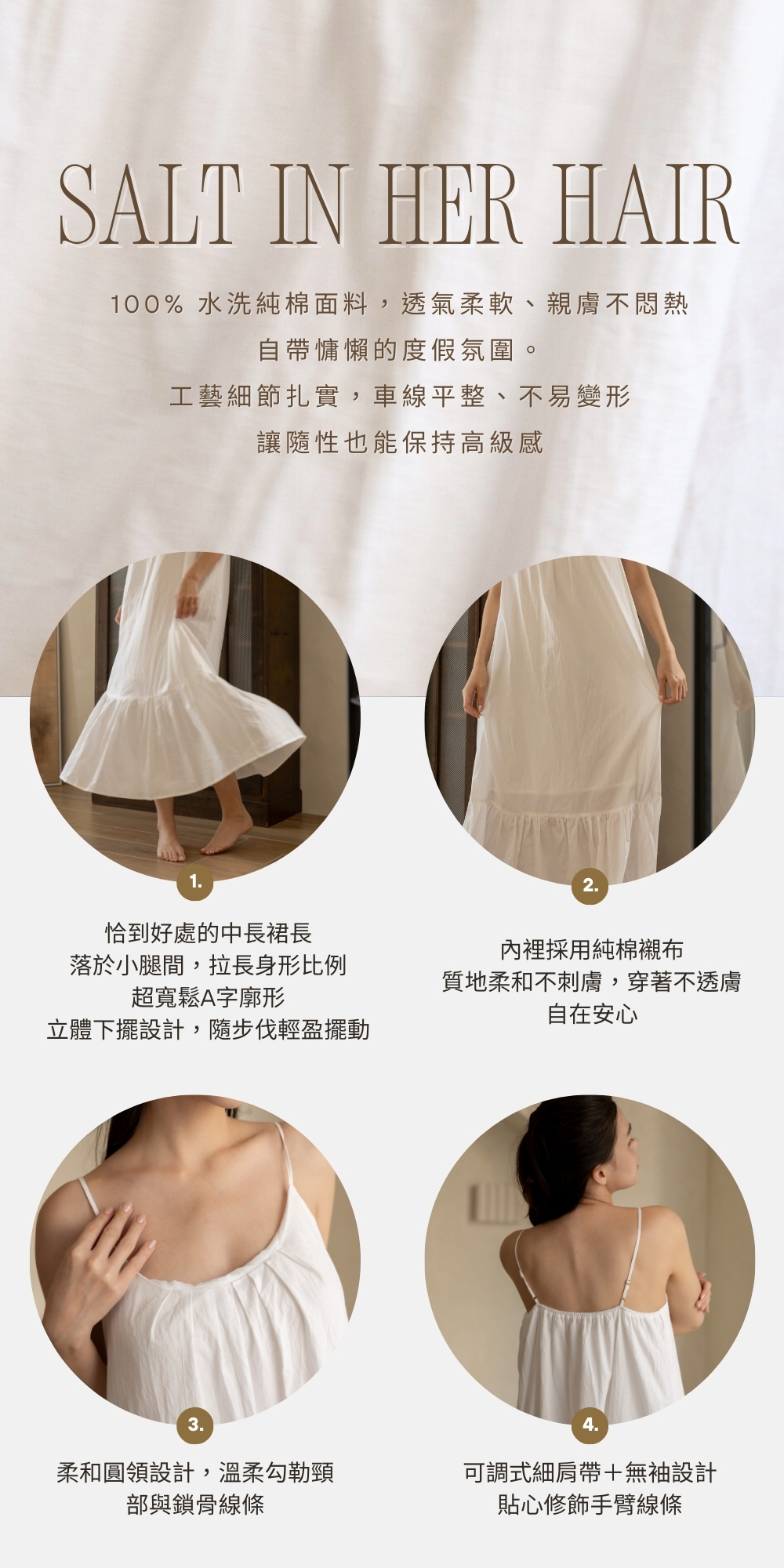 一件專為夏日海風設計的度假風吊帶連衣裙,從剪裁到面料,每一處細節都為妳的自在與優雅而生。