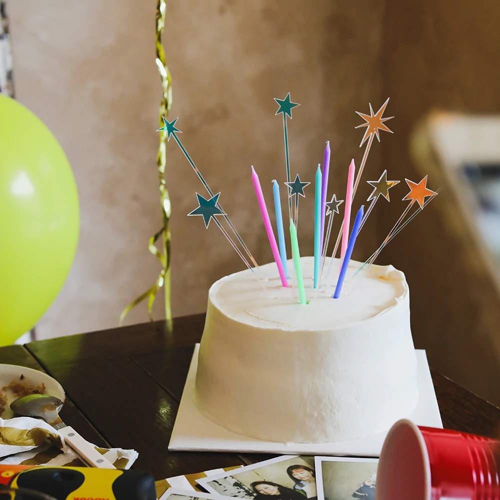 星形造型的插牌排除了讓你的蛋糕與眾不同,也讓你專屬的日子裡更閃閃發亮