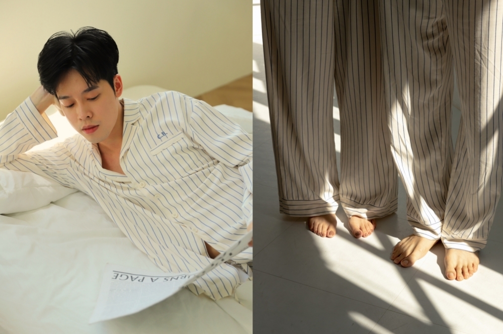 而橫向的條紋袖口與褲口設計,點綴直面的主線條,