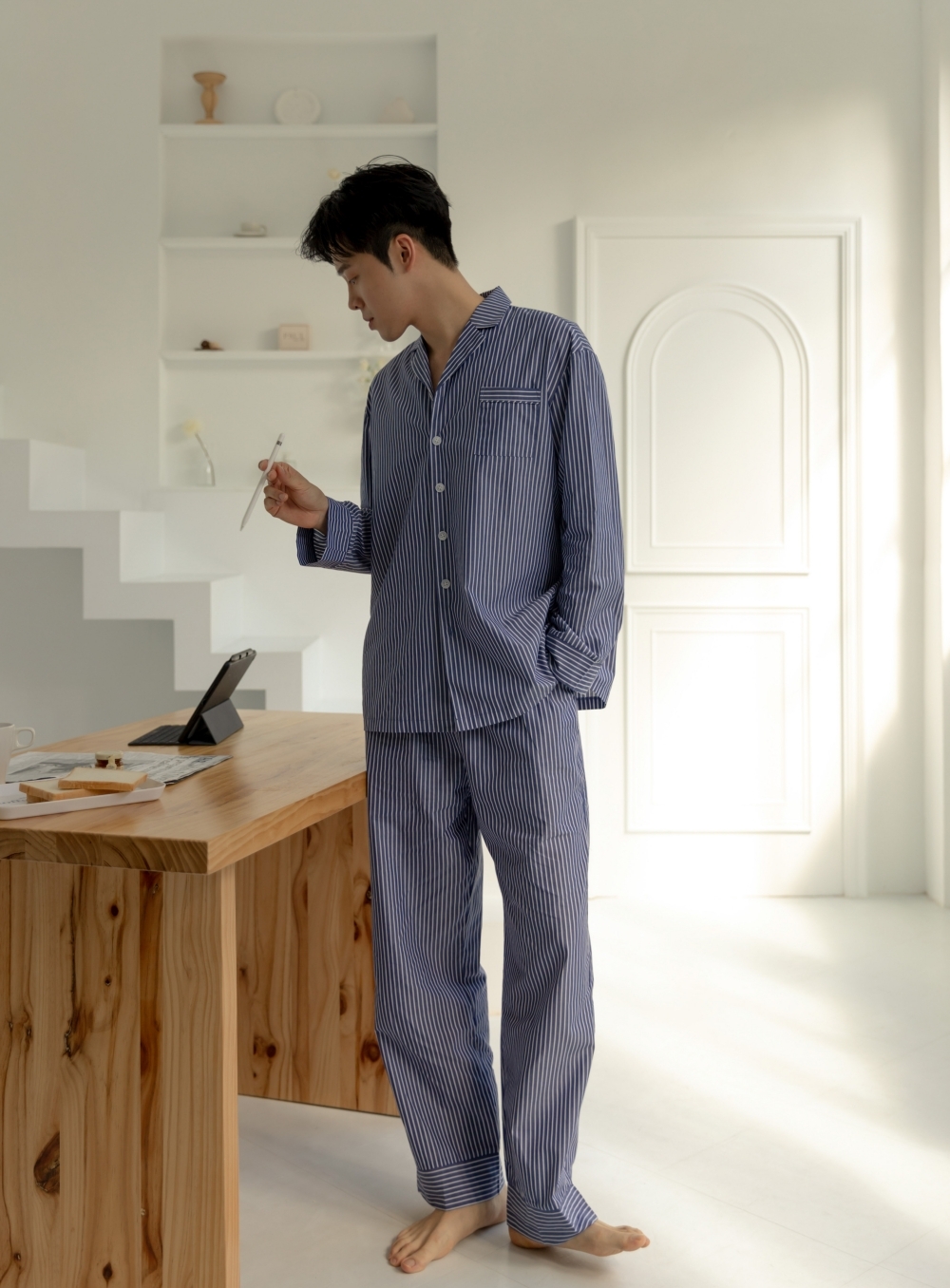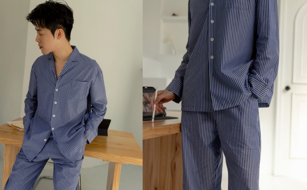 午夜藍條紋布料成分稍有不同,嘗試100%純棉,體驗舒適兼具透氣感。