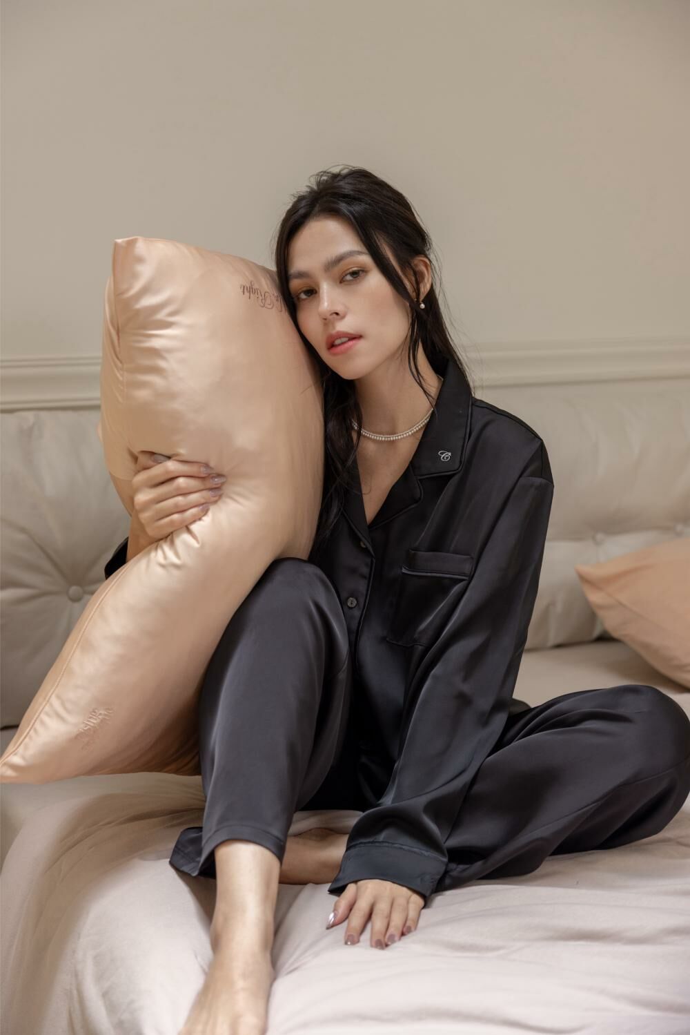 嚴選布料柔軟絲滑卻有一定的挺度跟份量感,不會覺得過於輕薄,同時能帶給肌膚貼合又絲滑,摸起來有十足的高級感。