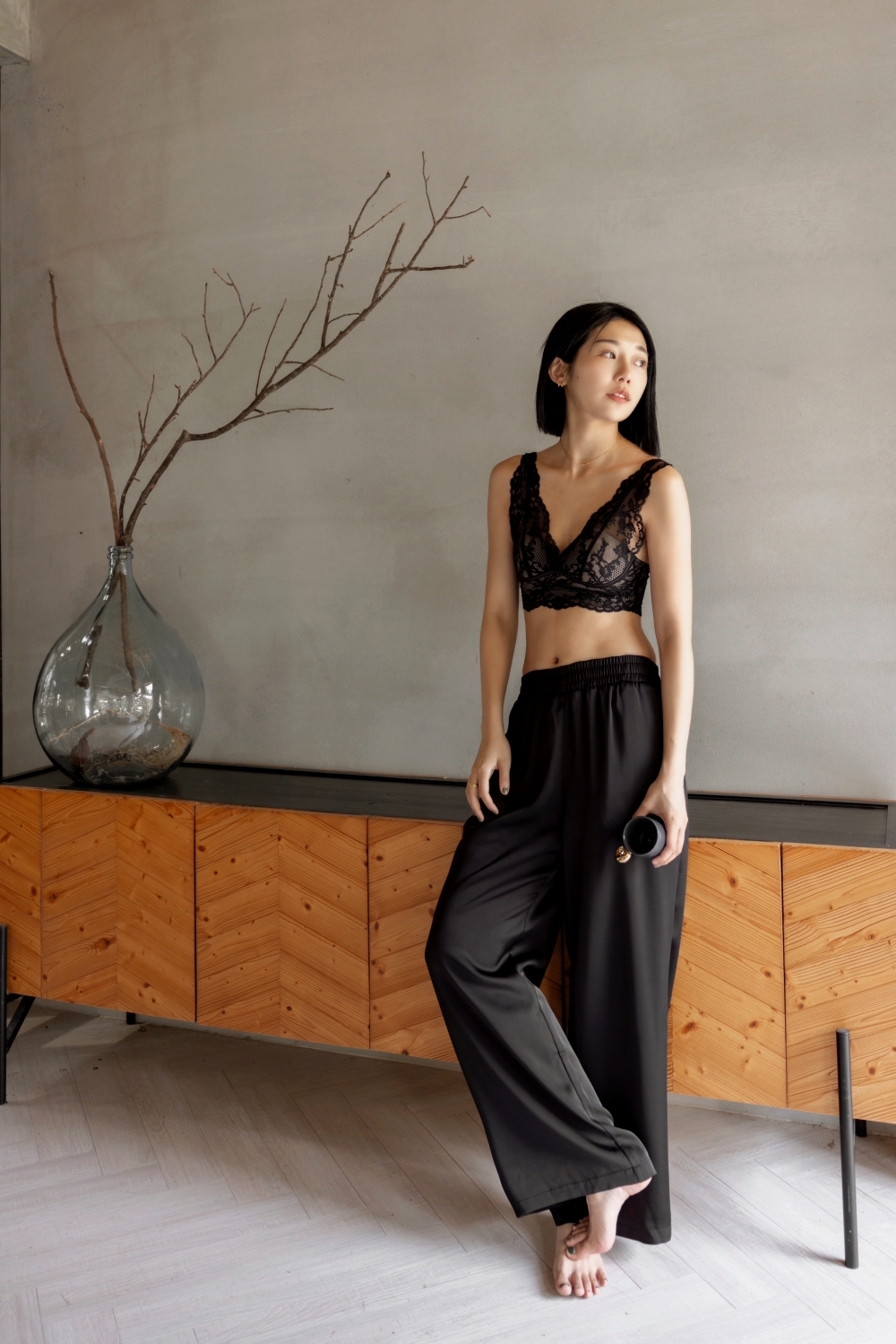 沿用質感的緞面布料,讓黑色系變得更加高雅。