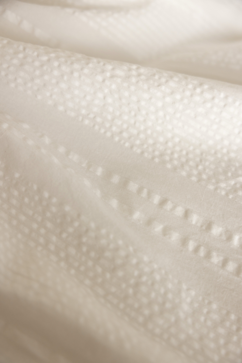 - 白色款為泡泡感提花棉,整體布面自然立體、蓬鬆不貼膚,帶點童趣感。