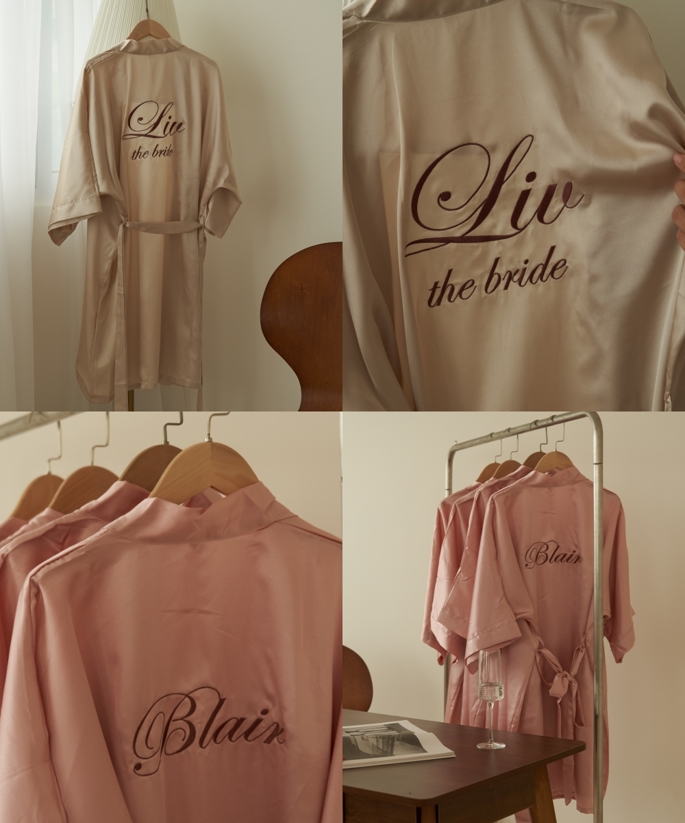 1.絲滑慵懶緞面腰帶睡袍(香檳金/香檳粉)