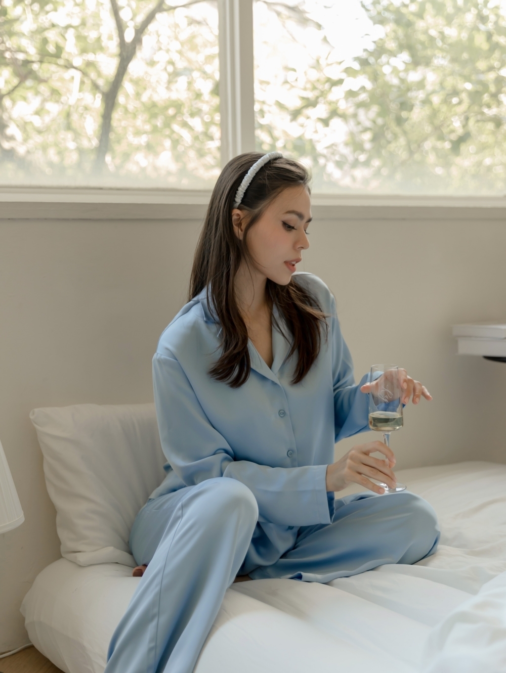 2.珍珠光感長袖套裝(香檳金/冰川藍)
